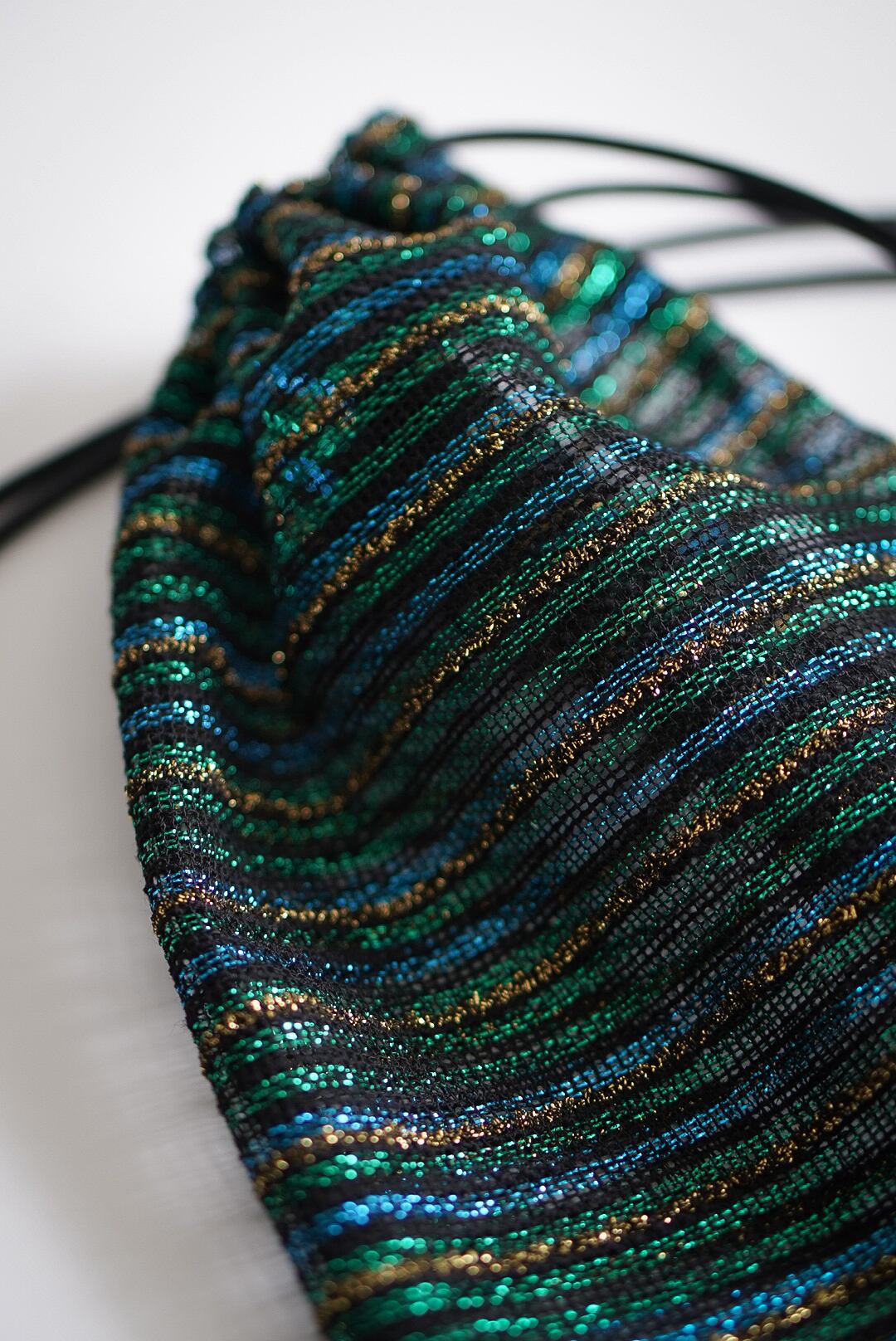KINCHAKU LAME STRIPE BLUE OIT-026 軽量かつ小ぶりでベーシックなデザインの純国産の巾着。 透け感のあるストライプのラメ素材はハリ感があり上品です。 上品な蝋引きコットンのストラップ紐はドローコードによって長さを自由に調整可能なので肩掛けや手提げ等で使用できます。 素材:ポリエチレン50% コットン20% ナイロン17% レーヨン9% ラメ4% 寸法 280×210mm ※お取り扱い上の注意点 本製品は軽量のため、過剰な重い物を入れることはお控えください。 日常的な使用方法であれば問題ありませんが破損の原因となる可能性があります。
